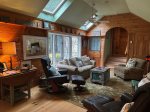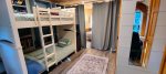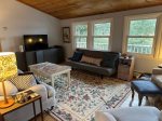 As you enter the property, you will find two separate wings. To the left is the kitchen, living room, sitting room with a full bathroom including laundy and the primary suite and en suite bathroom. As you make your way right, there is a bedroom on the first floor with bunk beds and a queen with a brand new hall bathroom. The upstairs bedroom contains a queen bed, and a single day bed with a single trundle underneath.