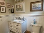 First Floor- Kitchen, Dining Area, Living Room, Full Bathroom with laundry off kitchen area, Queen bedroom with en suite stall shower bathroom, Wrap around deck, screen gazebo off deck, Bedroom with 2 Twin Bunk Bed and Queen bed, New Hall Shared large stall shower bathroom (New 2023)