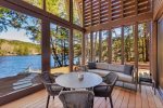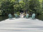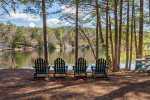 Inside the lakeside house is a comfortable living room with a field stone fireplace in the living area. The large primary king bedroom with en suite bathroom is spacious, including double sinks a custom, glass stall shower. A large kitchen and dining area are a great place to gather over food preparations. Off the kitchen is a half bath and laundry room.