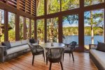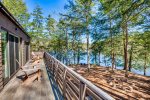 The outdoor Solo Stove fire pit sits on a small hill overlooking the water and dock just a short distance away. This location feels private, even on one of the most popular lakes in Midcoast Maine. The screened-in porch is perfect for enjoying the outdoors in the evening. This is lakeside living at its very best!