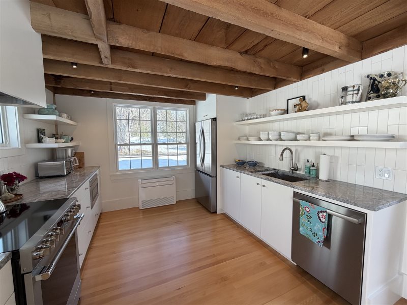 High Harbor house is an 1830s antique farmhouse that has been completely renovated head to toe with no expense spared. From the beautiful wood beam ceilings to the quintessential crown moldings the new owners left untouched, it was renovated for practicality and comfortable functionality complete with central AC and high speed fiber optic internet.