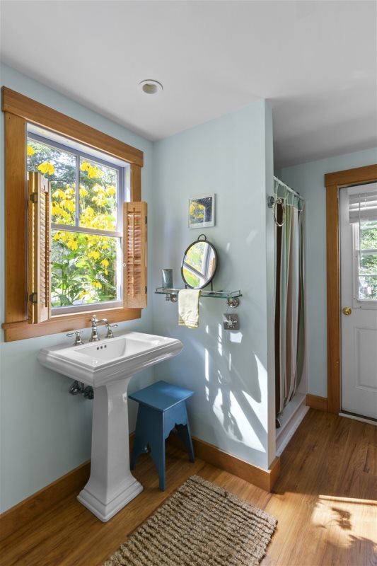 The cozy guest house, just steps away, is complete with a living area, small refrigerator, and full bathroom on the first floor. Enjoy your morning coffee from the front yard and listen to the birds and boats pass by.