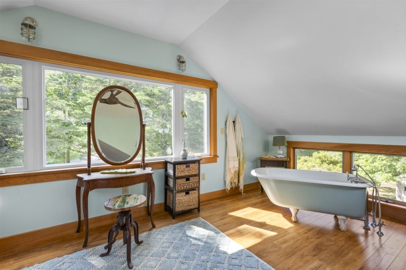 Main Cottage 2nd Floor: King Bedroom with soaking tub/shower handheld, separate toilet room